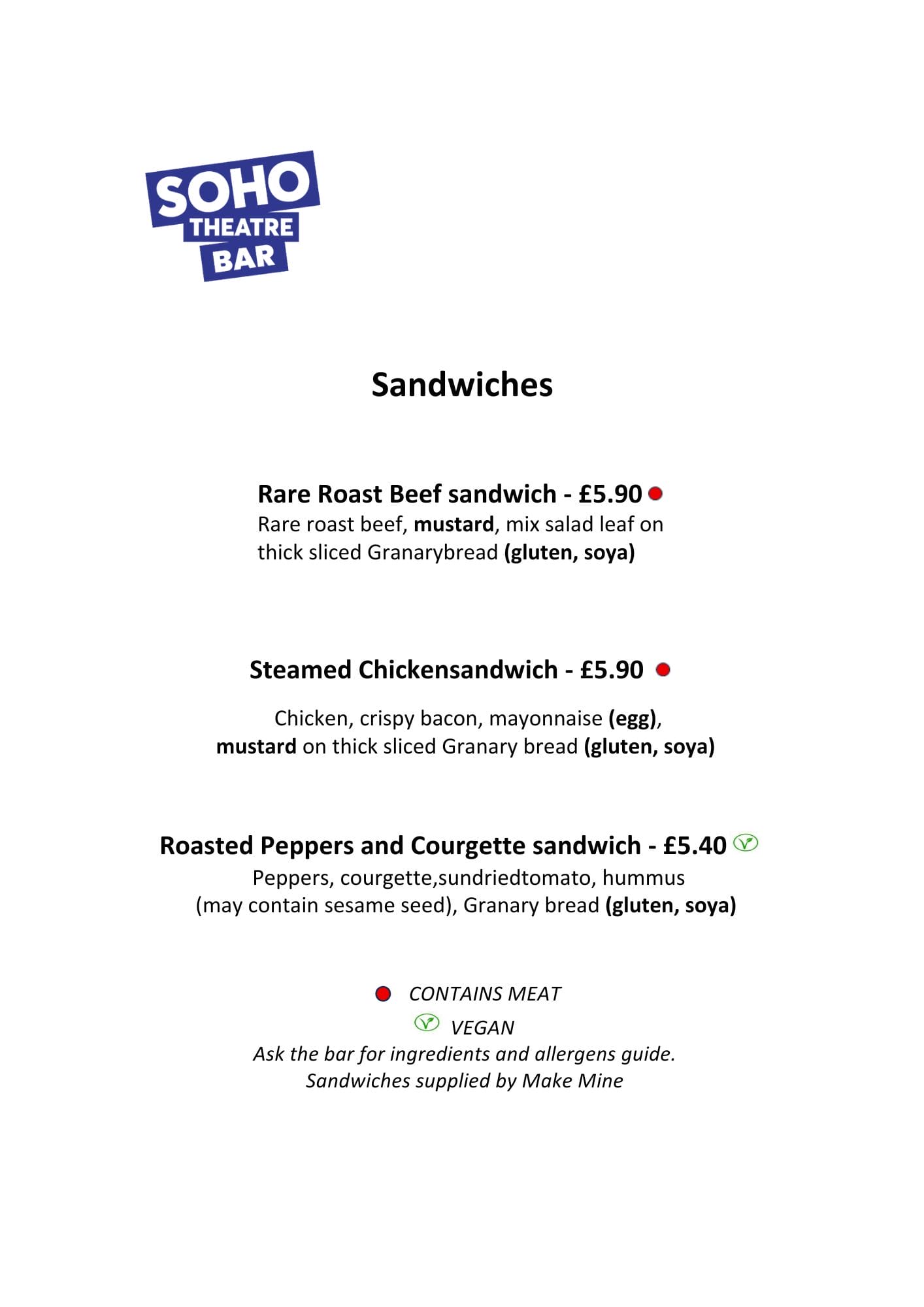 - Soho Theatre Bar menu