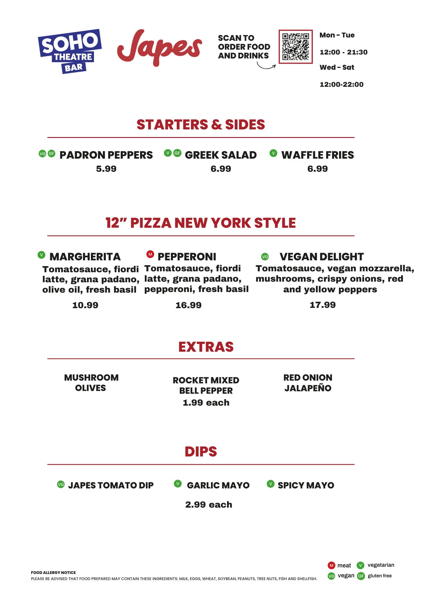 - Japes Menu