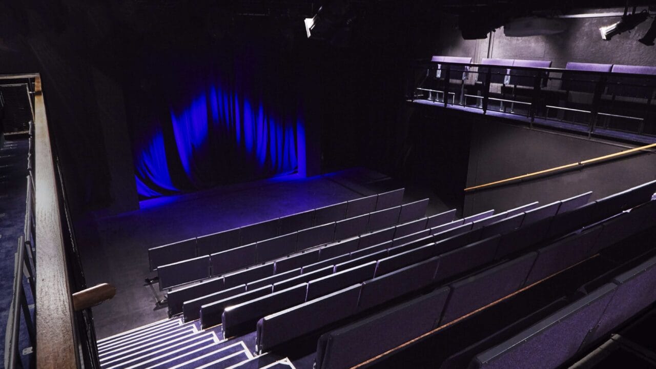 At 150 capacity the Theatre is our largest venue, with seating on a raked bank and two balconies. The stage is at floor level and is 10 x 6.5m, please note – there may be a theatrical set in place during your event. Whether it’s colourful flooring or a fixed backdrop, a set adds a unique element to any event, and we will endeavour to communicate this design with you at the point of booking.